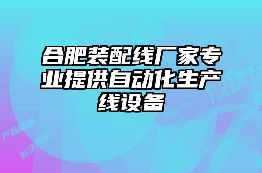 合肥裝配線廠家:自動化生產線設備的定制專家